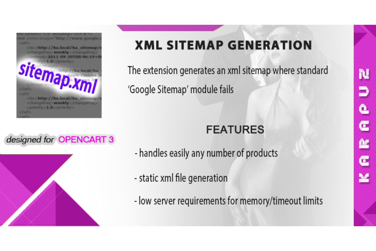 The extension generates a sitemap file in the same format as the default OpenCart sitemap, ensuring compatibility with search engines while supporting significantly larger data volumes.