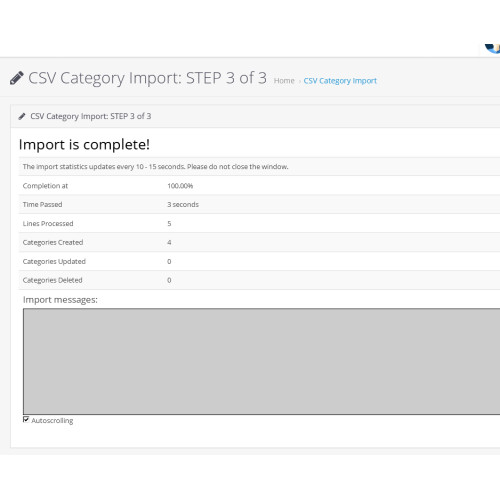 CSV Category Import (Opencart 3)