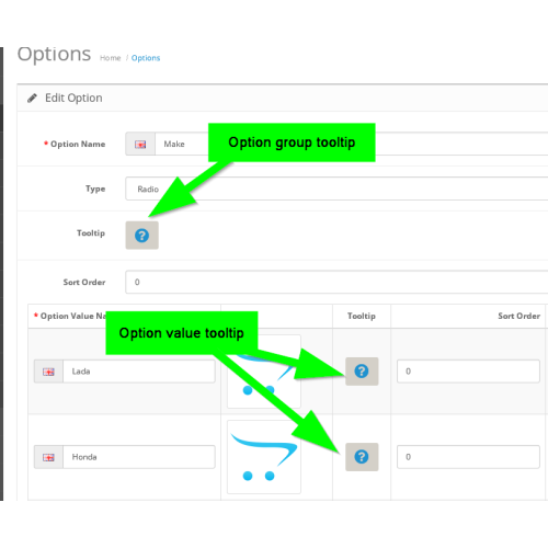 The extension allows to define tooltips for product options that are visible on the product details page.