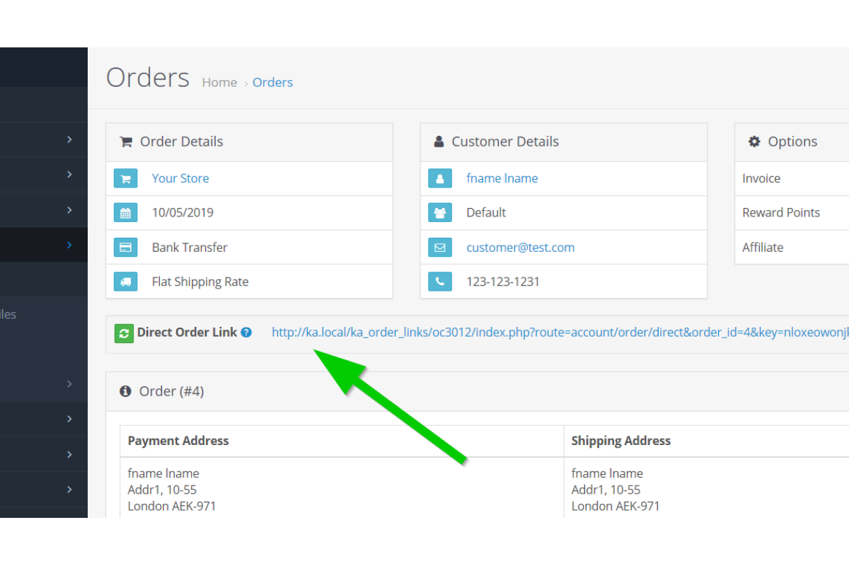 Direct Order Links (Opencart 3)