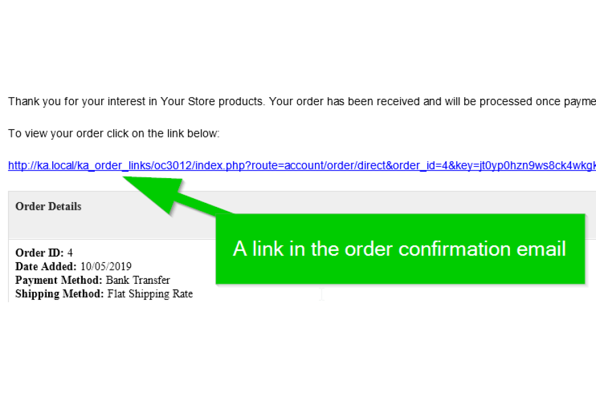 A secure direct link is automatically included in order-related emails, enabling quick and convenient access to order information.