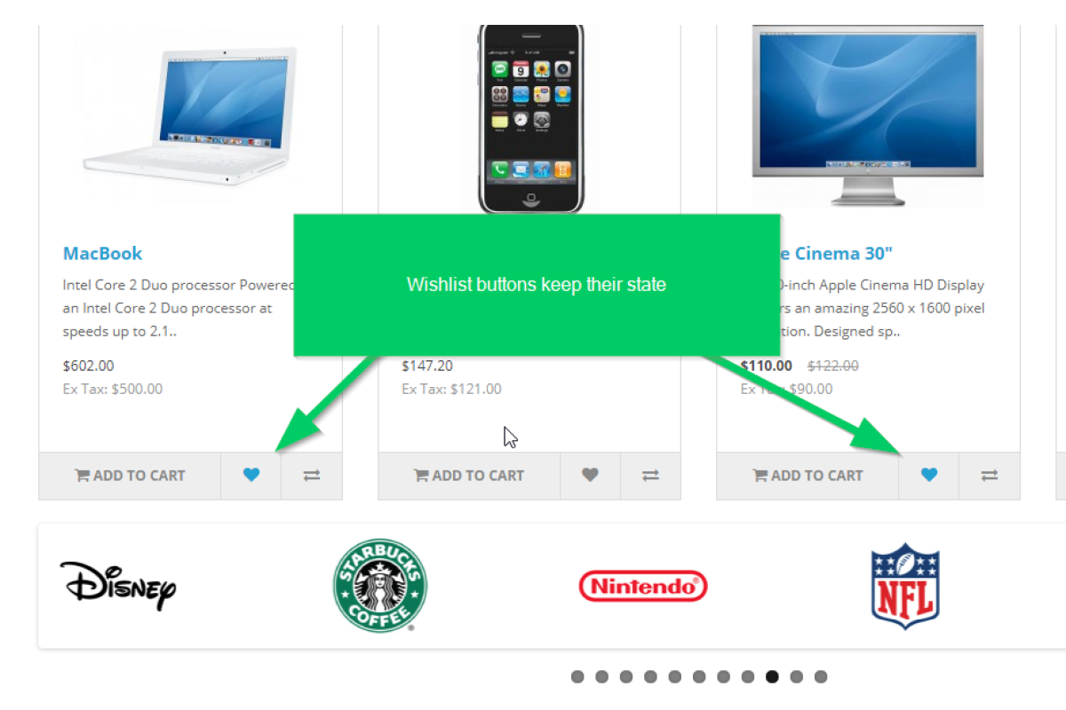 - Highlights products already added to the wishlist