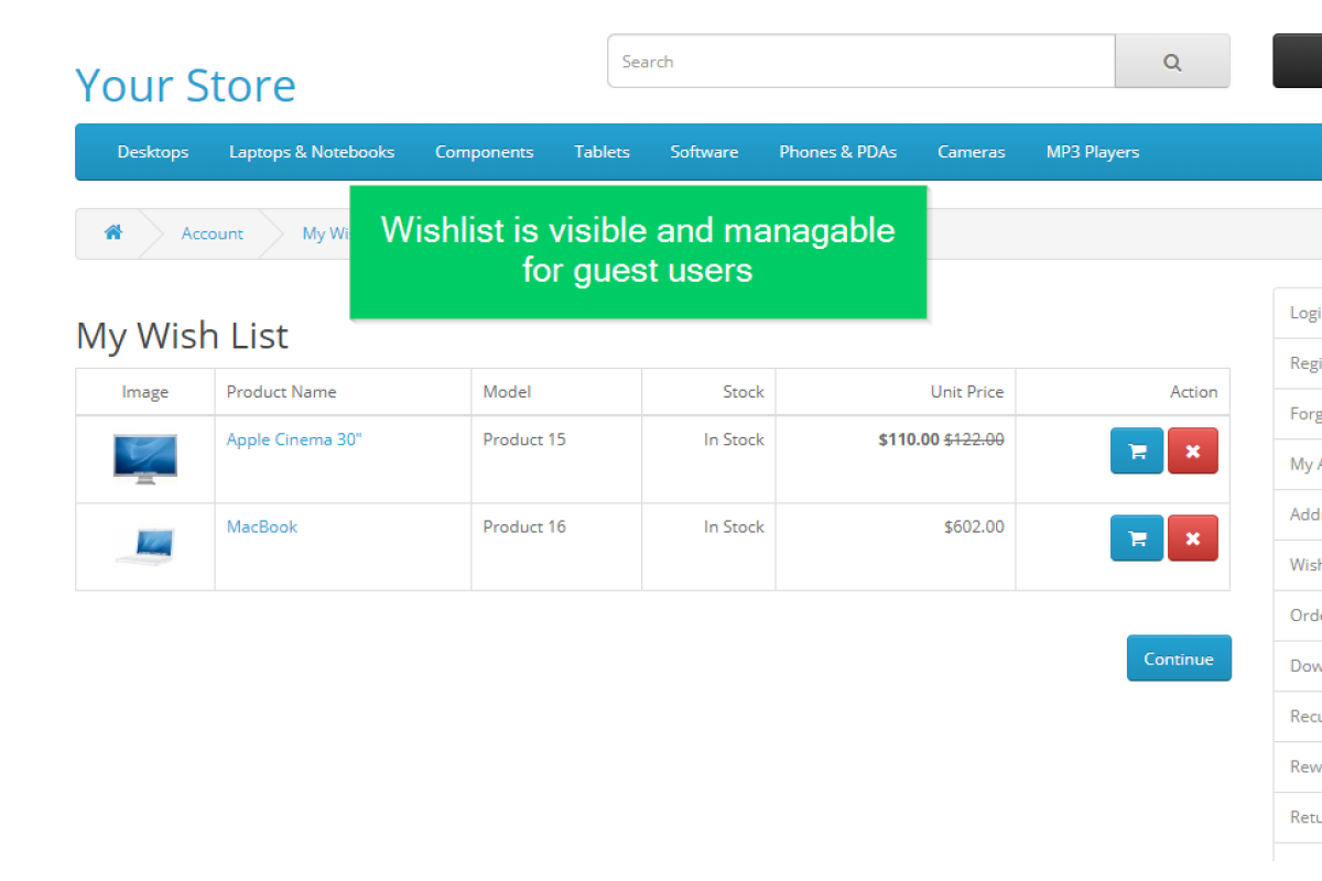 Wishlist for Guests (Opencart 3)